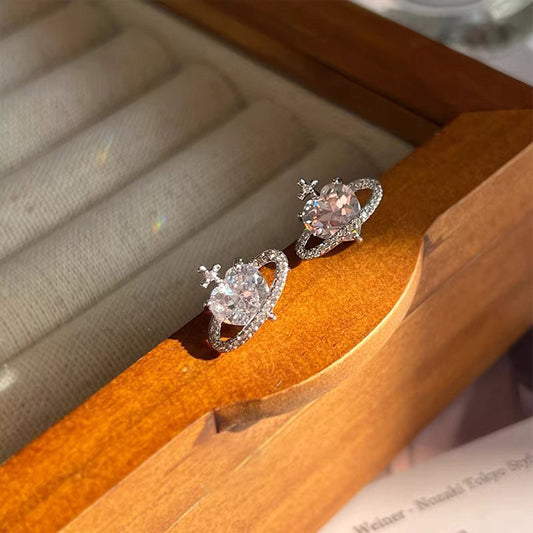 F廠【DQ10937E】S925純銀璀璨星球愛心耳環女精緻高級感心形閃鑽耳飾品甜酷風 25.04-1