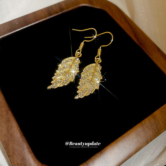 A廠【HE26066】鑲鑽樹葉流蘇耳環輕奢高級感氣質耳鉤個性時尚百搭耳飾設計感小眾 25.04-4