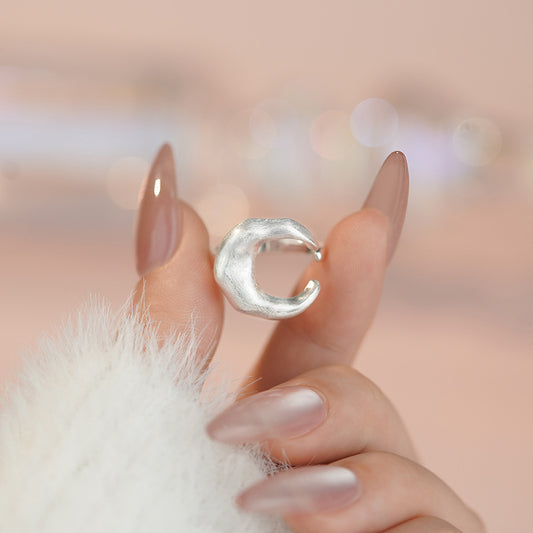 E廠【YC5560R】S925純銀肌理月亮戒指質感小眾氣質清新甜美高級溫柔手飾 25.04-4