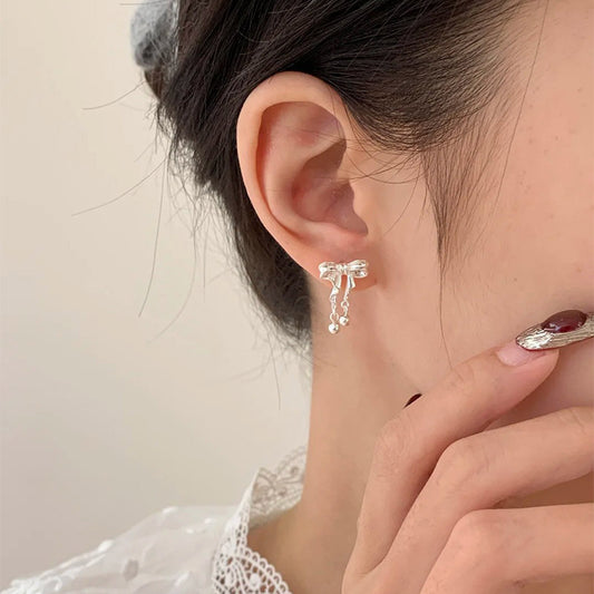 F廠【DQ10790E】999足銀韓系ins風蝴蝶結耳環女小清新甜美圓珠流蘇高級感耳飾 25.04-4