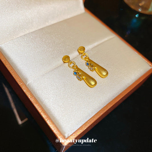 A廠【HE26100】925銀針鑲鑽拉絲水滴耳環法式復古時尚百搭耳環輕奢高級感氣質耳環女 25.04-4
