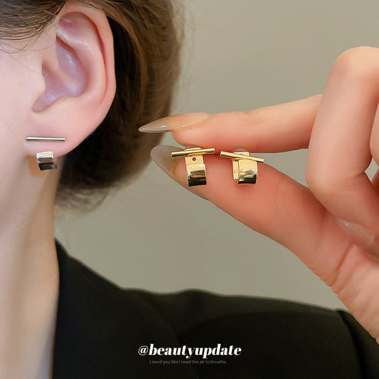 A廠【HE26086】925銀針小巧精緻幾何字母耳環女個性冷淡風設計耳環輕奢高級感耳飾女 25.04-4