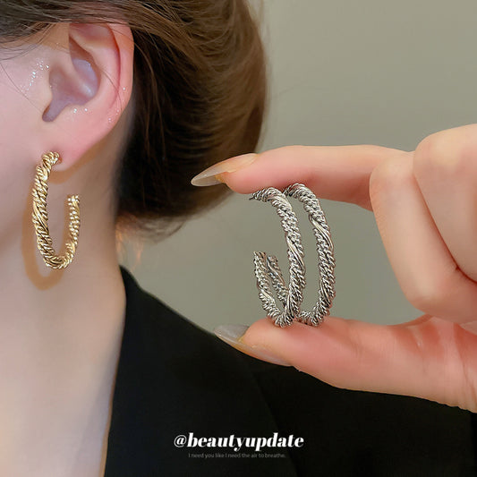 A廠【HE26071】925銀針不規則扭曲纏繞C型耳環輕奢高級感耳環歐美簡約時尚耳環耳飾 25.04-4