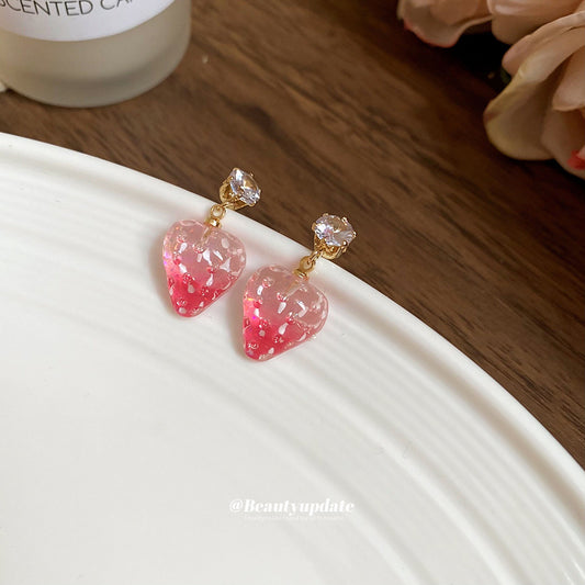 A廠【HE26162】925銀針鋯石樹脂草莓耳環韓國清新甜美耳環時尚百搭耳飾設計感小眾女 25.04-4