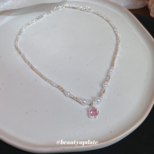 A廠【HN8517】鋯石碎銀黑膽石珍珠項鍊女精緻個性時尚氣質鎖骨鏈輕奢高級感頸鍊 25.04-4