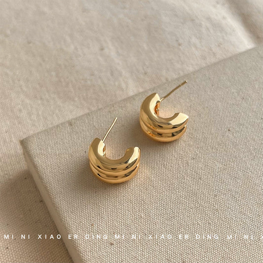 C廠【5216】法式極簡金屬感耳環冷淡風光面金屬感C型歐美小眾高級感百搭耳飾 25.04-4