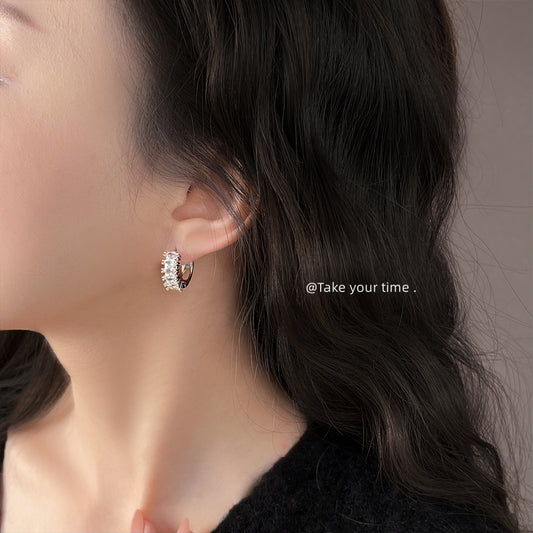 C廠【5465】微鑲鋯石簡約設計感耳扣時尚通勤百搭冷淡風極簡主義圓圈排鋯耳飾 25.04-4