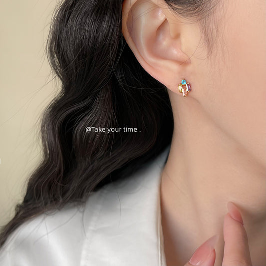 C廠【5855】彩色系微鑲鋯石迷你版小耳環清新甜美夏日新款通勤百搭耳飾女 25.04-4