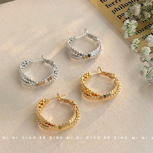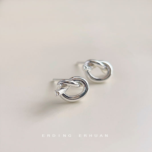 C廠【3330】時尚通勤百搭繩結耳環個性設計感冷淡風光面金屬感氣質鹼水結耳飾 25.04-4