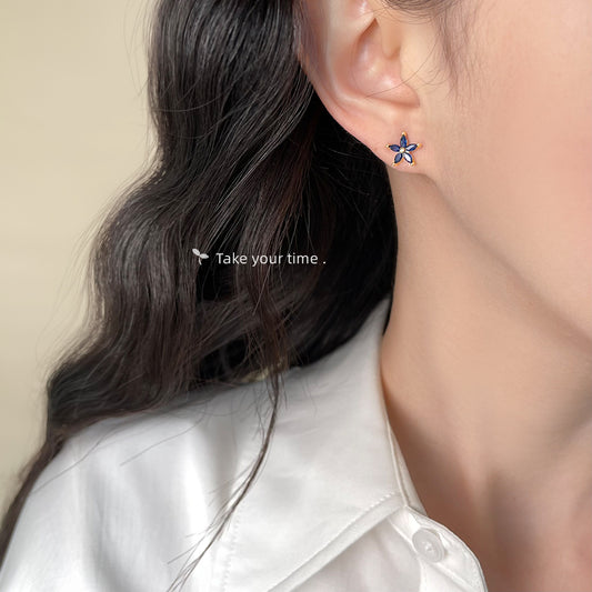C廠【5856】藍色繫微鑲鋯石花朵甜美清新夏日新款耳飾簡約百搭花瓣耳飾女 25.04-4
