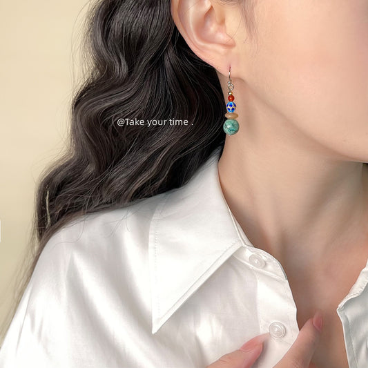 C廠【5860】文藝復古民族風天然石湖北松石琺瑯滴釉手工藝品設計景區耳環耳環 25.04-4