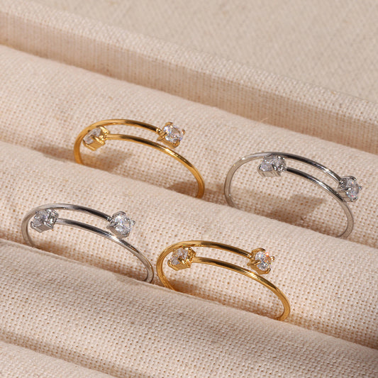 B廠【A032】法式簡約不鏽鋼愛心開口5A鋯石戒指女可調式小眾設計高質感 25.04-4