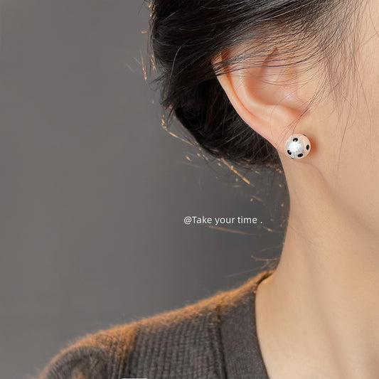 C廠【5346】黑白波點棉花珍珠耳環時尚通勤百搭圓形幾何高級感氣質赫本風耳飾 25.04-4