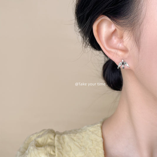 C廠【5929】個性甜酷風ins微鑲鋯石飛鳥銀針耳環女 小眾設計師古銀色耳飾 25.05-1