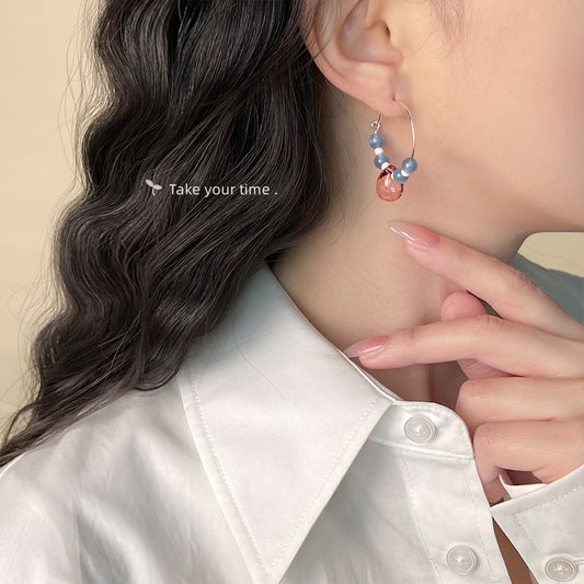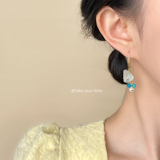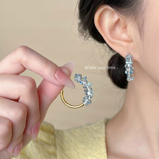 C廠【5905】天然石碎石水晶溫柔海水藍度假風甜美清新手工耳環飾品女 25.05-1