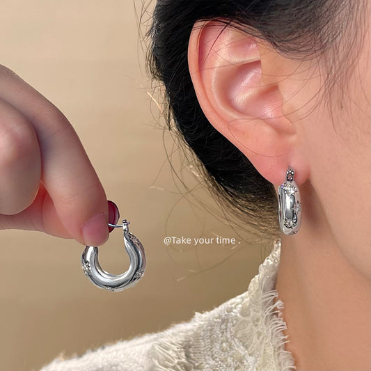 C廠【5260】微鑲鋯石芒星耳環時尚通勤百搭簡約高級感圓形耳環時髦氣質耳飾女 25.05-1