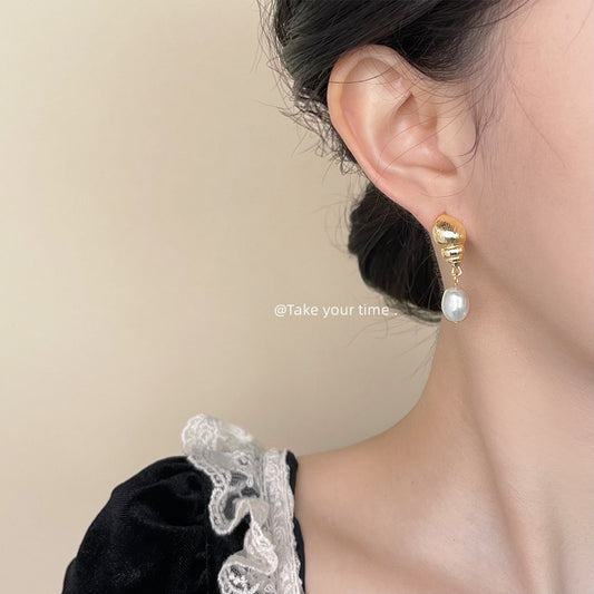 C廠【5966】淡水珍珠925銀針鍍14K海洋系海螺耳飾時尚高級感設計師耳環女 25.05-1