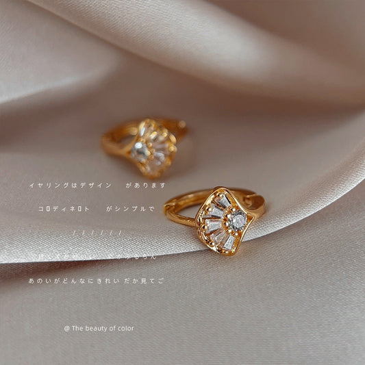 C廠【2704】微鑲鋯石銀杏葉耳扣法式輕奢高級感扇形樹葉幾何簡約時尚通勤耳飾 25.05-1