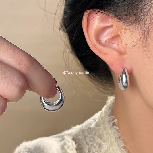 C廠【5262】歐美高級感光面素圈耳扣時尚通勤百搭水滴形金屬感冷淡風圓形耳飾 25.05-1