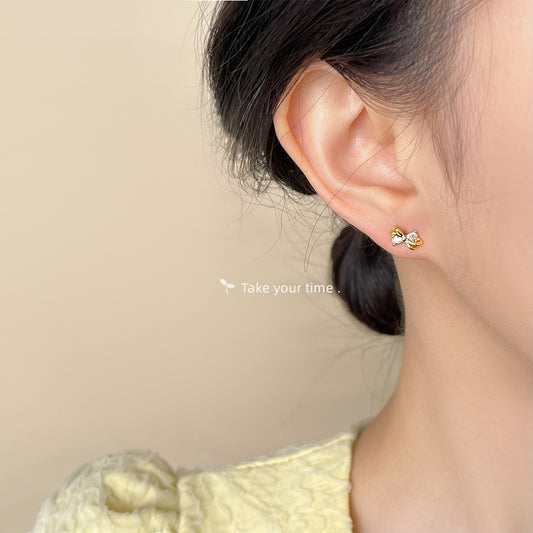 C廠【5919】迷你版!微鑲鋯石蝴蝶結鍍14K小耳環 日常通勤睡覺不用摘耳飾 25.05-1