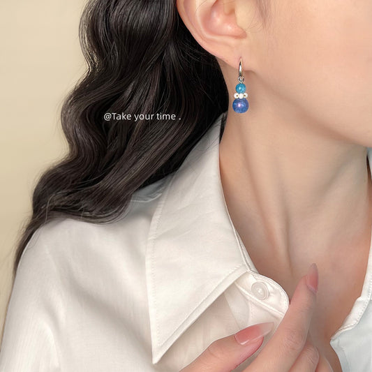 C廠【5861】原創設計師款玻璃琉璃藍色星空手工耳環小眾ins時尚耳環飾品 25.05-1