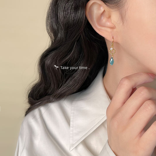 C廠【5859】原創設計師款藍色玻璃水晶水滴簡約小巧清新甜美耳飾新款耳環 25.05-1