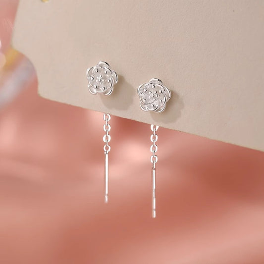 F廠【DQ11154E】足銀999小清新簡約花朵耳環女森系甜美繁花流蘇精緻耳飾 25.05-2