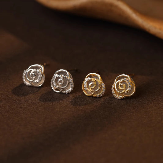 F廠【DQ10963E】足銀999小眾設計山茶花耳線女簡約高級感花朵養耳純銀耳飾潮 25.05-2