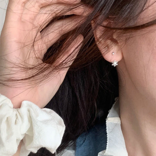 F廠【DQ10423E】足銀999ins精緻小眾雪花耳環女創意設計後掛式耳環氣質耳飾潮 25.05-2