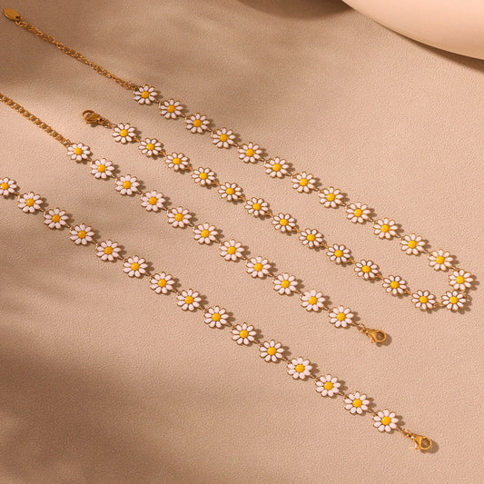 B廠【TXP256】新款不鏽鋼小雛菊花朵項鍊手鍊腳鍊首飾組個性氣質飾品女 25.05-2