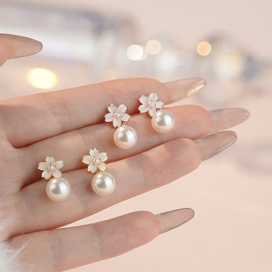 E廠【YC2994E】S999足銀氣質櫻花珍珠耳環女甜美獨特設計法式文藝風小眾耳環 25.05-2
