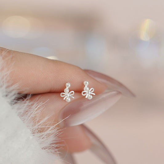 E廠【YC2172E】S925純銀蝴蝶結珍珠耳環韓風小眾溫柔風精緻風文藝耳飾 25.05-2