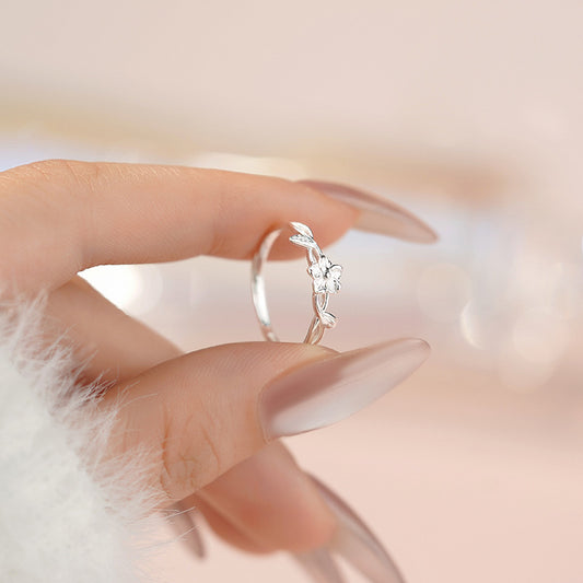 E廠【YC4897R】S925純銀蝴蝶戒指森系小清新韓風氣質田園風高級手飾 25.05-2
