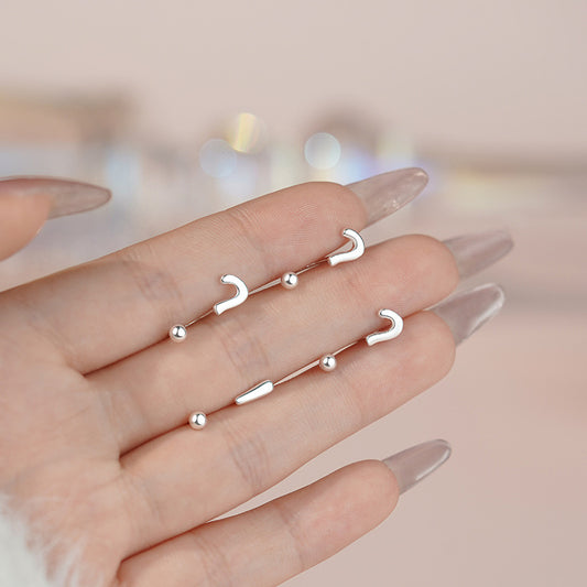 E廠【YC7028E】S999足銀問號感嘆號螺絲耳環個性設計感幾何簡約小眾耳飾 25.05-2