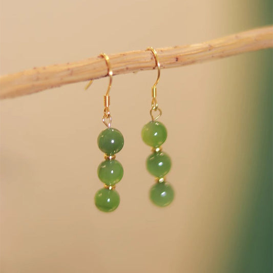 F廠【DQ10919E】S925純銀新中式天然碧玉耳鉤女氣質優雅天然石古風耳環耳環潮 25.05-2