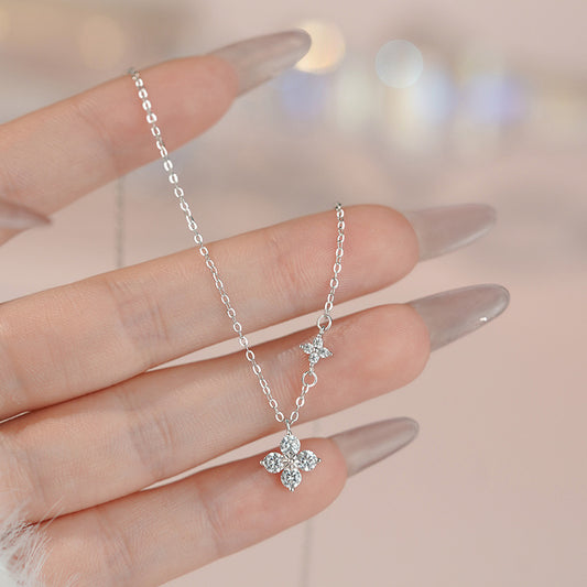 B廠【P1267】新款5A鋯石四葉花帶鑽鎖骨項鍊不鏽鋼材質鍍18k金保色飾品 25.05-2