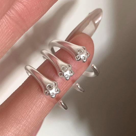 F廠【DQ8333R】S925純銀可愛甜美小貓爪戒指女簡約精緻鑲鑽貓爪啞光開口指環 25.05-2