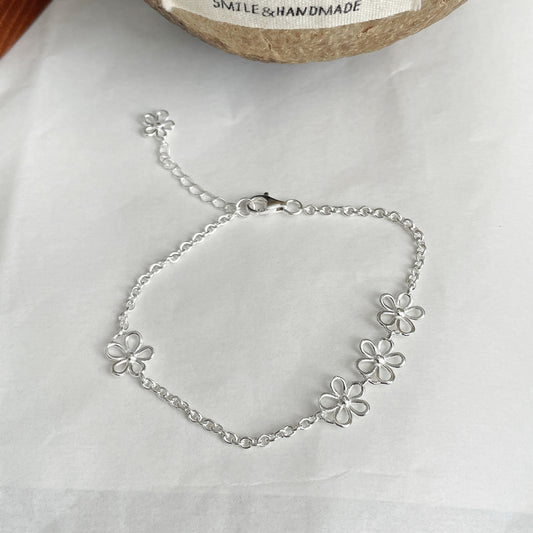 F廠【DQ0464S】韓國韓版鏤空花朵手鍊女S925純銀小清新簡約甜美小花百搭手飾 25.05-2