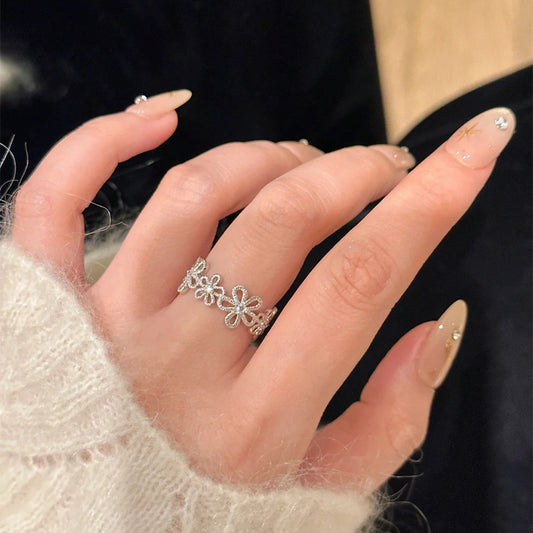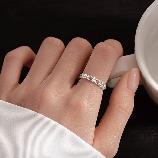 F廠【DQ8056R】足銀999幸運四葉草戒指女韓版簡約鏤空花朵簡約森系開口指環 25.05-2