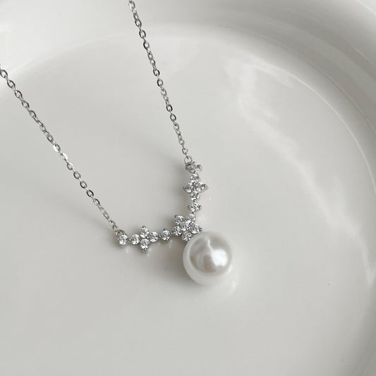 F廠【DQ2064N】S925純銀輕奢小眾施家仿珍珠項鍊女精緻閃鑽花朵高級感鎖骨鏈 25.05-2