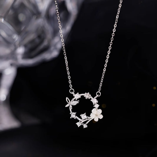 F廠【DQ0303N】足銀999輕奢蝴蝶花環項鍊女小眾設計貝殼花朵爆款鎖骨鏈 25.05-2