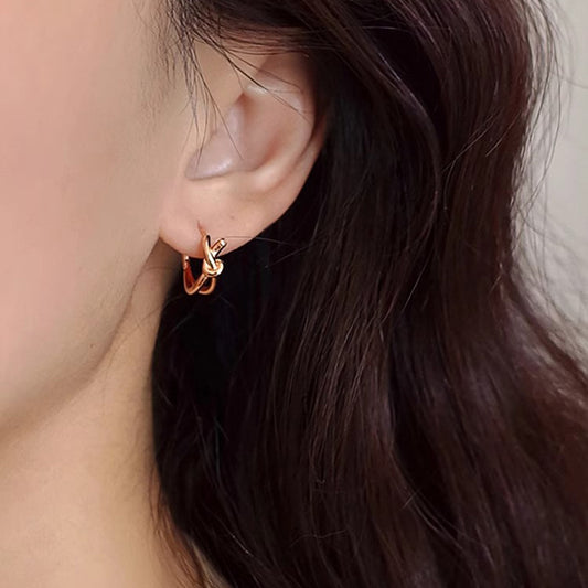 F廠【DQ10982E】S925純銀冷淡風打結耳環女法式高級感圓圈繩結耳環個性耳飾潮 25.05-2