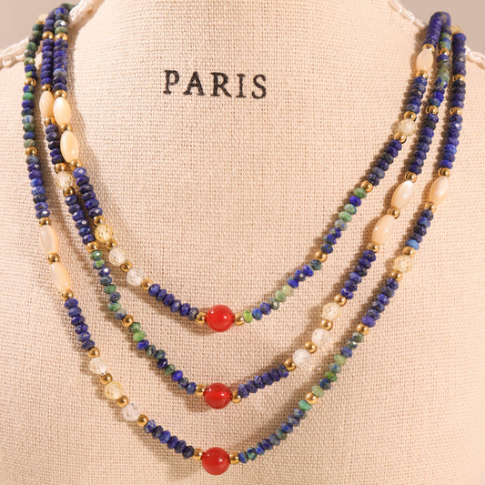 B廠【P1332】國潮青金石串珠鎖骨鍊紅瑪瑙吊墜個性氣質項鍊不鏽鋼飾品潮 25.05-3
