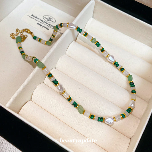 A廠【HN8846】鈦鋼天然石珍珠串珠項鍊新中式國風氣質鎖骨鏈小眾高級感項鍊飾 25.05-4
