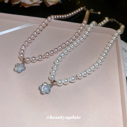 A廠【HN8901】滴油山茶花珍珠吊墜項鍊法式優雅高貴氣質鎖骨鏈輕奢高級感項鍊飾女 25.05-5