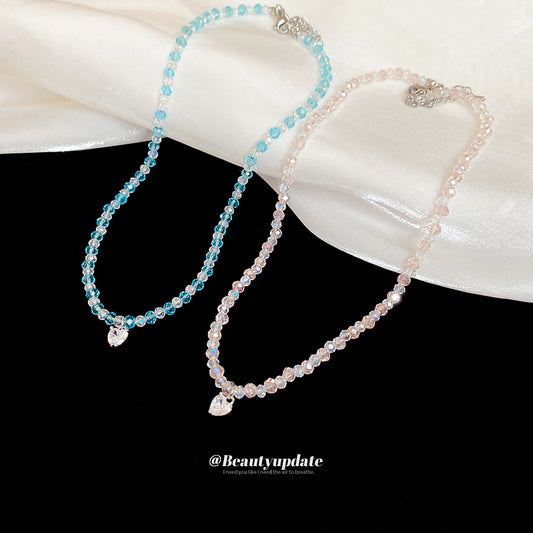 A廠【HN8943】鋯石玻璃串珠愛心吊墜項鍊小眾氣質百搭鎖骨鏈時尚高級感項鍊 25.05-5