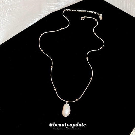 A廠【HN8843】鈦鋼淡水珍珠吊墜項鍊時尚簡約小眾鎖骨鏈個性百搭高級感項鍊 25.05-5