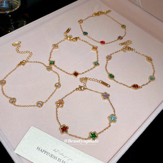 A廠【TB31】鈦鋼鋯石菱形花朵水滴手鍊歐美ins時尚潮流手環輕奢高級感手飾女 25.05-5