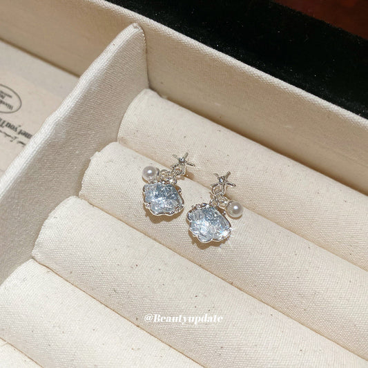 A廠【HE26677】銀針鑲鑽珍珠貝殼星星耳環清新甜美耳環輕奢高級感耳飾設計感小眾 25.05-5