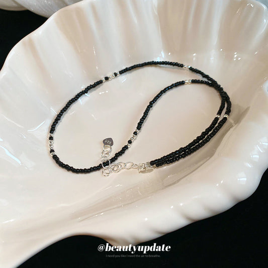 A廠【HN8865】黑色玻璃串珠項鍊歐美ins風小眾設計感鎖骨鏈時尚高級感項鍊 25.05-5